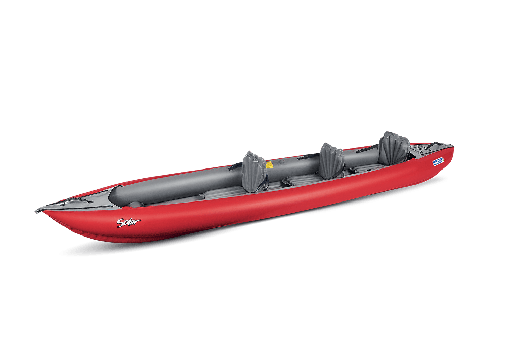 The SOLAR inflatable kayak serves for both trips on lakes and touring on rivers up to WW2. An additional foredeck (optional accessory) prevents water from flowing over the bow, and so increases the user’s comfort during paddling, for example, on the sea. The kayak is equipped with a draining hole in the rear deck. The basic version of the SOLAR is equipped with two seats and with fixtures for the third seat. There is a possibility to place seats in different positions. The SOLAR can be turned into a single-seat, double-seat and triple-seat kayak.